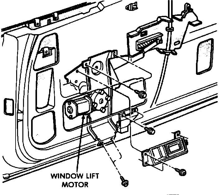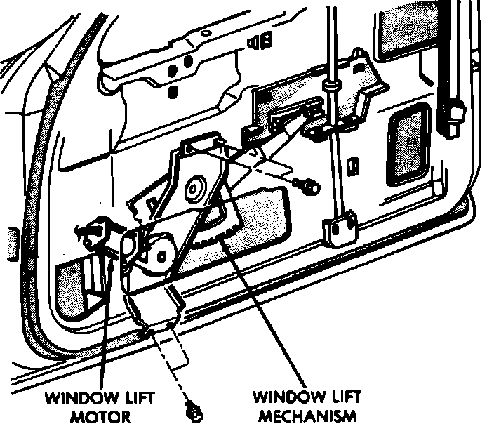 The window regulator is a conventional sector gear design. The power window motor is attached to the window regulator. The window motor/regulator assembly is attached to the inner door panel of each front door.