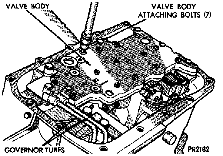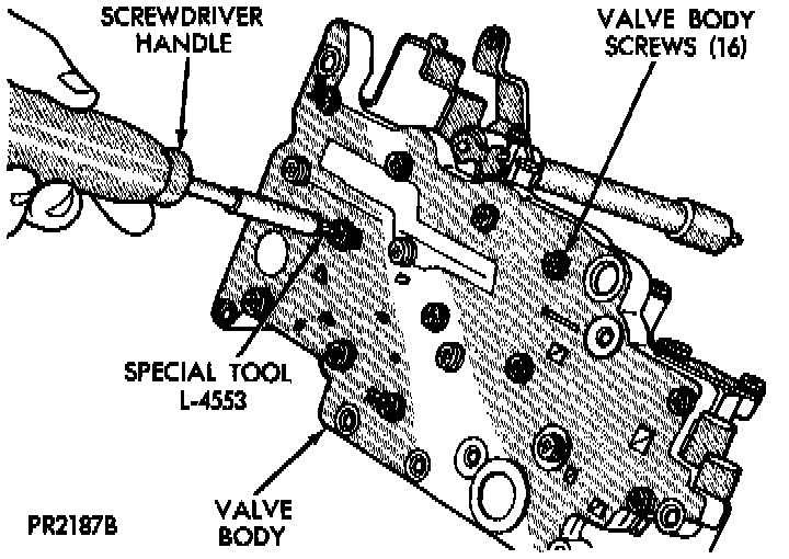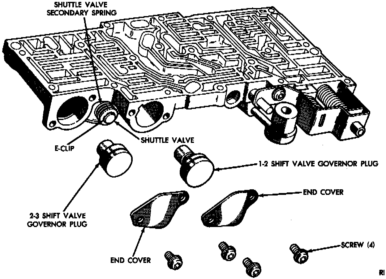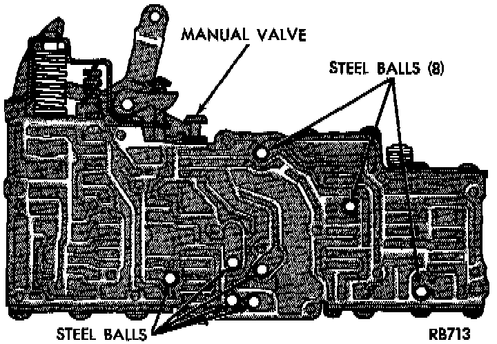 VALVE BODY RECONDITIONNOTE: Prior to removing any transaxle subassemblies, plug all openings and thoroughly clean exterior of the unit, preferably by steam. Cleanliness through entire disassembly and assembly cannot be overemphasized. When disassembling, each part should be washed in a suitable solvent, then dried by compressed air. Do not wipe parts with shop towels. All mating surfaces in the transaxles are accurately machined; therefore, careful handling of all parts must be exercised to avoid nicks or burrs. Remove all old R.T.V. sealant before applying new R.T.V. sealant. Use only R.T.V. sealant when installing oil pan.