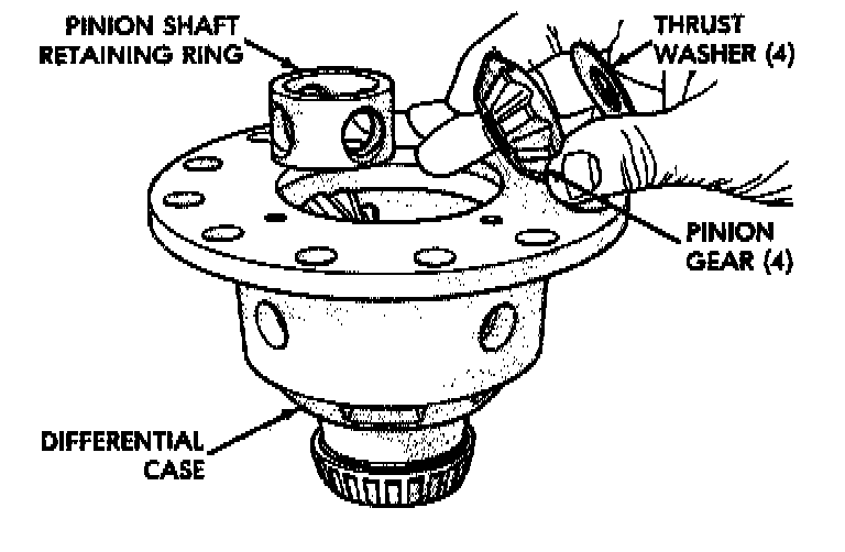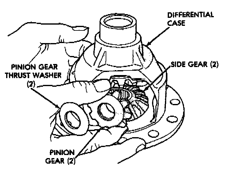 Remove Or Install Pinion Gears, Side Gears, And Thrust Washers By Rotating Side Gears To Opening In Case: