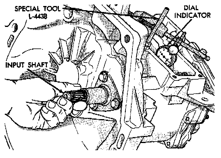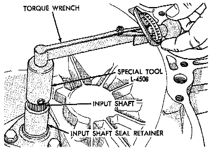 8. Verify that a preload condition does not exist. Use Special Tool L-4508 and an inch-pound torque wrench to check input shaft turning torque. The turning torque should be less than 5 in. lbs.
