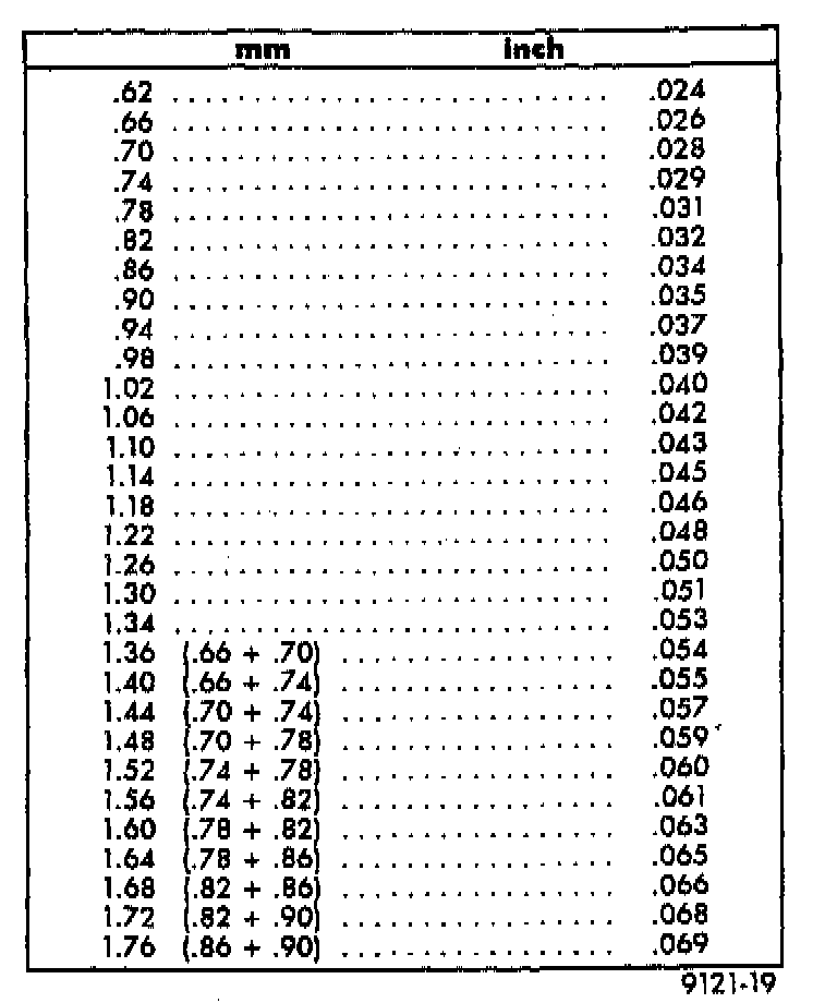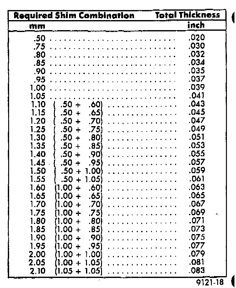 Combine shims, if necessary, to obtain a shim within 0.05mm (0.002 inch) of the required shim (see Shim Chart for proper shims).