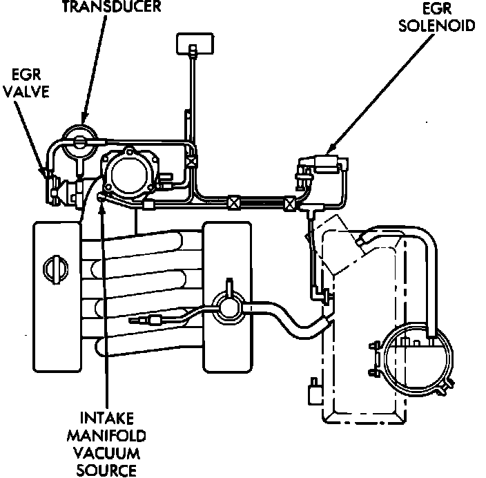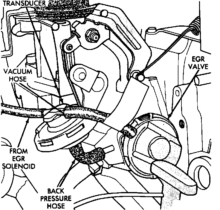 The EGR system used is a backpressure type. A backpressure transducer measures the amount of exhaust gas backpressure on the exhaust side of the EGR valve and it varies the amount of vacuum supplied to the EGR valve. The transducer uses this backpressure signal to supply the correct amount of vacuum to the EGR valve depending on engine load conditions. Vacuum is supplied to the backpressure transducer by a ported vacuum signal from the throttle body.