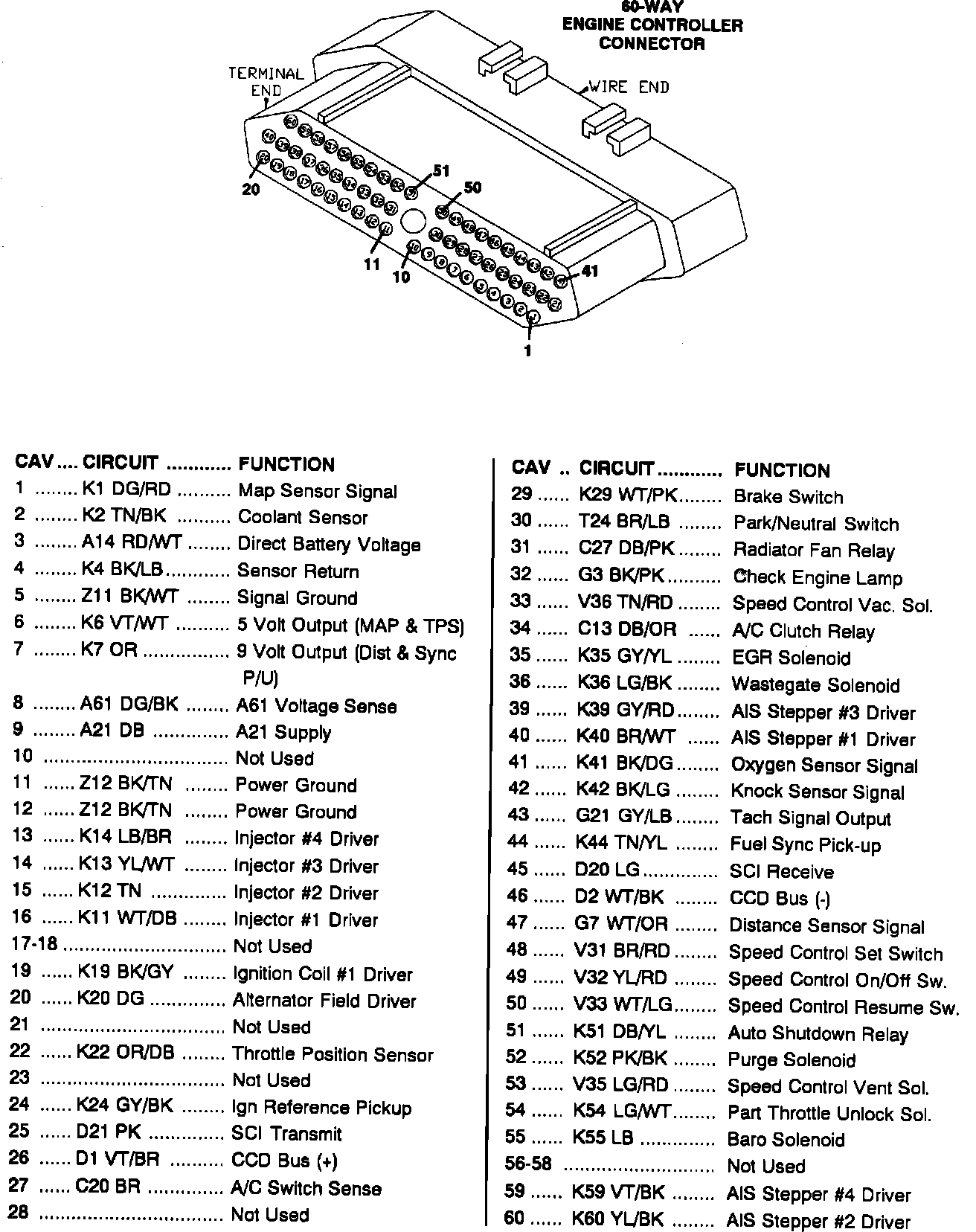 60-Way Connector Pinout Identification: