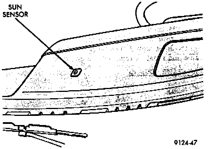 The sun sensor is mounted on the driver side of the vehicle on top of the instrument panel. This is not a thermistor type sensor but rather a photo diode. For this reason the sun sensor responds to sun light intensity rather than temperature. It is used to aid in determining proper mode door position. The sun sensor is not serviceable and must be replaced if found to be defective.