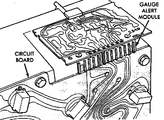 The gauge alert module is located on the top left corner of the instrument cluster assembly.