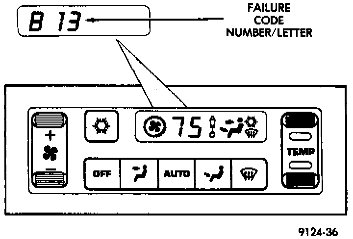 The Diagnostic Test is capable of checking all electrical signals between the ATC Control Module, actuators, sensors and blower control. The Diagnostic Test will display two types of FAILURE CODES. The Failure Codes numbered 01 through 22, have been detected during the Diagnostic Test. Failure Codes numbered 23 through 28, have been detected during normal ATC operation. Failure Codes 23 through 28 would then be stored in the ATC control computer and are only being retrieved during the Diagnostic Test.