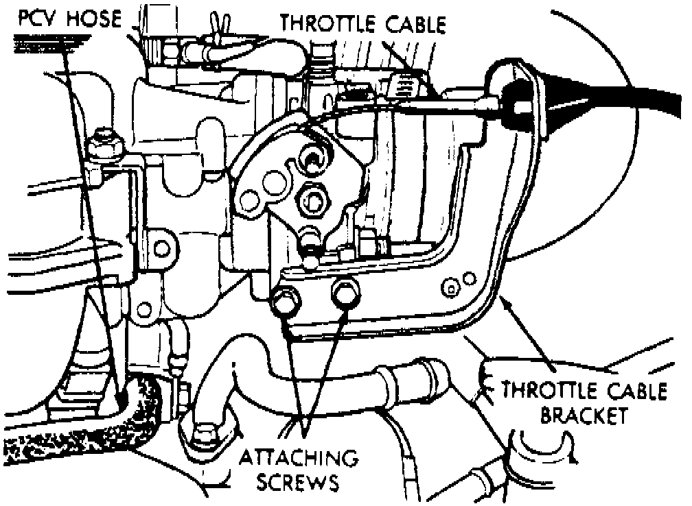 3. Remove air cleaner to throttle body hose, then disconnect throttle cable and transaxle kickdown linkage, Fig. 4.