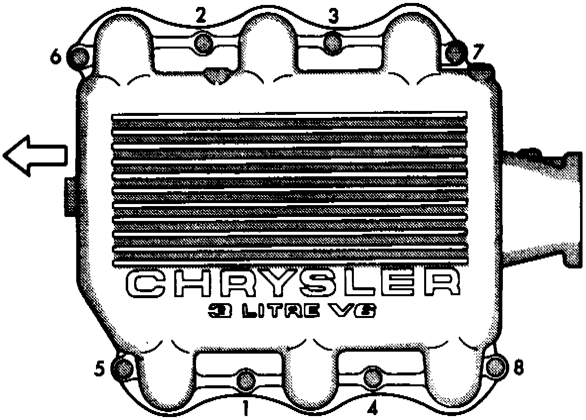 e. Torque air intake plenum attaching bolts to 10-11 ft. lbs., in sequence shown in Fig. 6.