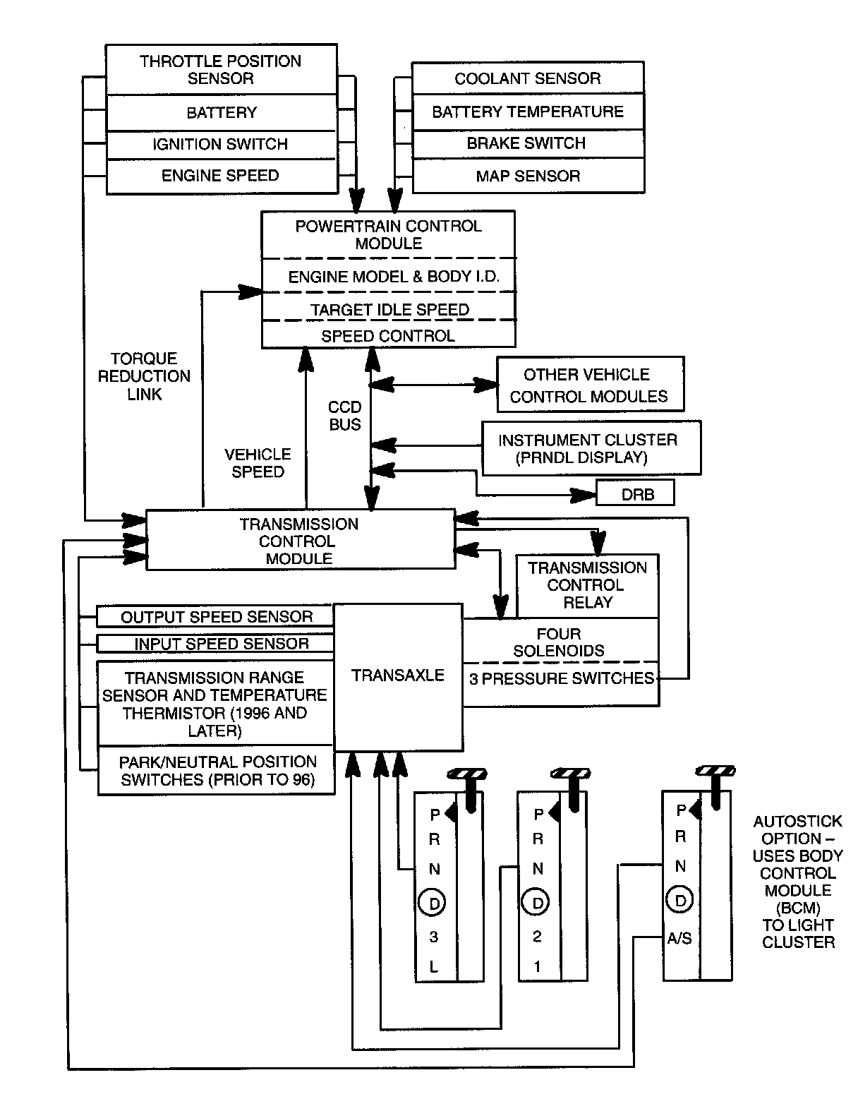The 41TE provides smooth clutch-to-clutch shifts for all gear changes. This is accomplished by reading the input and output speeds over 140 times per second, along with other inputs. This shift strategy is referred to as adaptive control. Adaptive control provides for the precise friction element control needed to make smooth shifts. The TCM learns the release rate of the releasing element and the apply time of the applying element that it is controlling. It also learns the rate at which the apply element builds pressure sufficient to begin making the speed change. It also adapts to any changes that occur with age or environment.