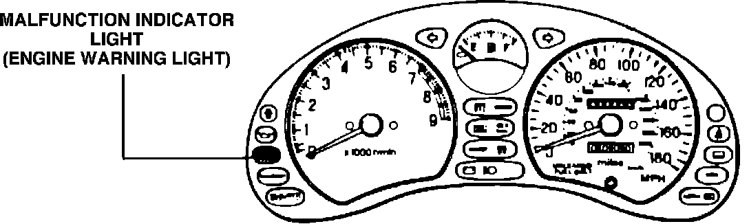 If a component or system malfunction is detected, the MPI Control Unit will illuminate the "MALFUNCTION INDICATOR LIGHT" and record the corresponding trouble code(s) in its memory. However, when an irregular signal returns to normal and the engine control unit judges that it has returned to normal, the malfunction indicator light will go out. If the ignition switch is turned OFF and then ON again, the MPI Control Unit will not illuminate the Malfunction Indicator Light until the irregularity is detected again.