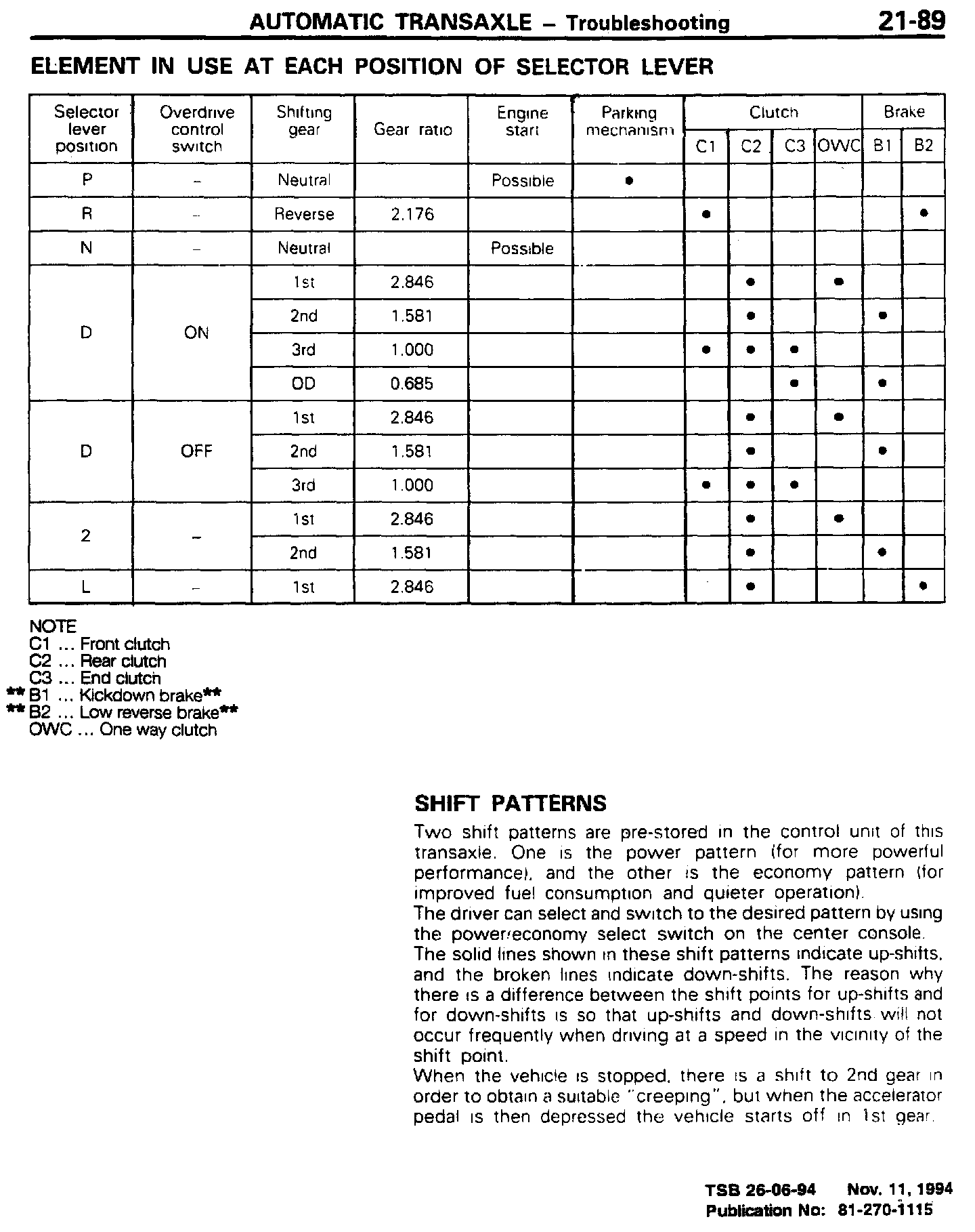 A/T - Selector Lever Position Callout Revisions