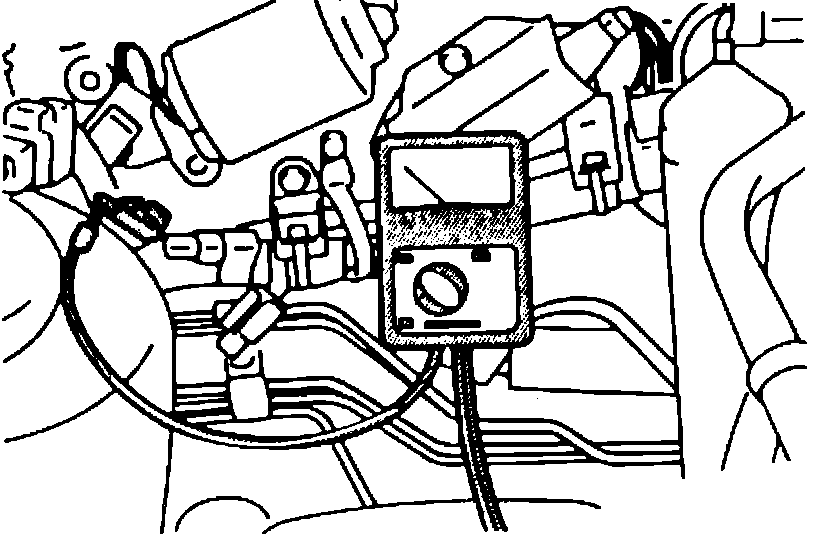 4. With the engine stopped, disconnect the ignition timing adjustment terminal, located in the engine compartment. Ground the terminal using a lead wire with alligator clips.