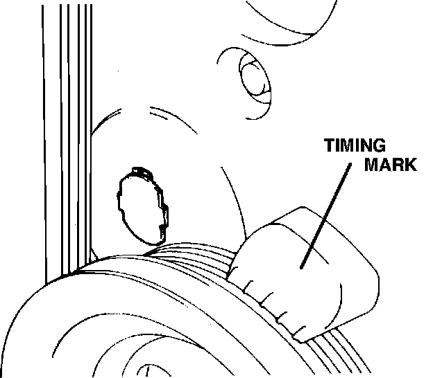 7. If timing is not within specification, loosen the crank angle sensor mounting nut and adjust by turning the sensors housing, then tighten the nut being careful that the crank angle sensor does not move. Recheck ignition timing.