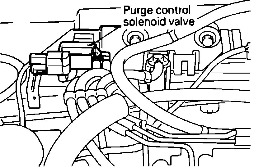 PURGE CONTROL SYSTEM TESTNOTE: When disconnecting the vacuum hoses, make an identifying mark on them to ensure proper routing when reconnecting.