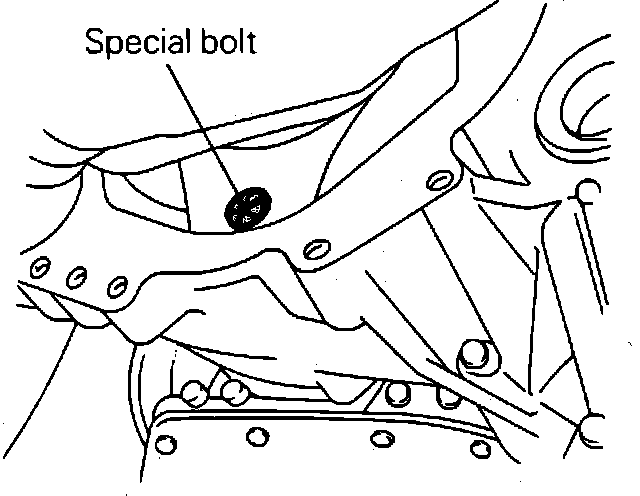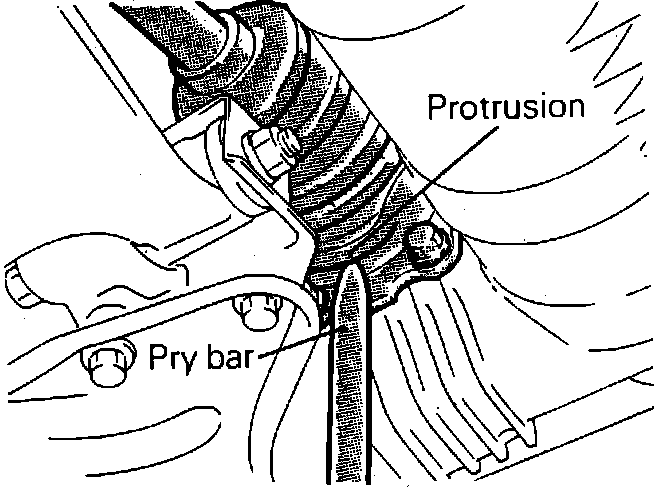 c. Remove left driveshaft bearing bracket bolts and insert pry bar between bearing bracket and cylinder block.