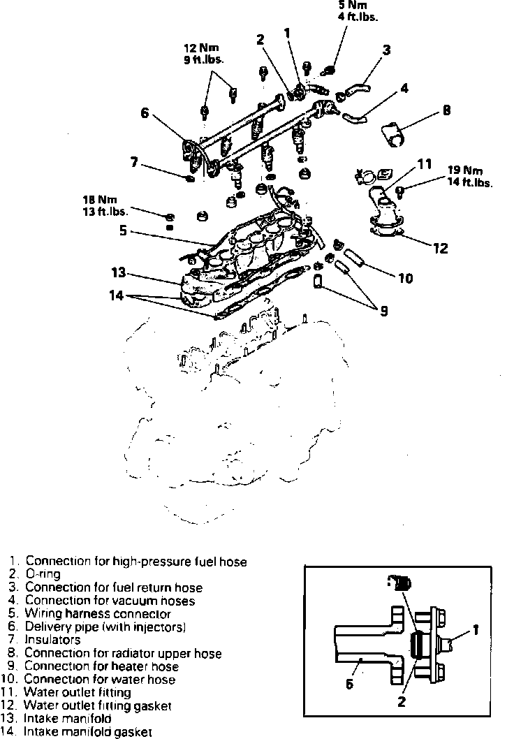 4. Remove intake manifold in sequence shown in Fig. 14, noting the following: