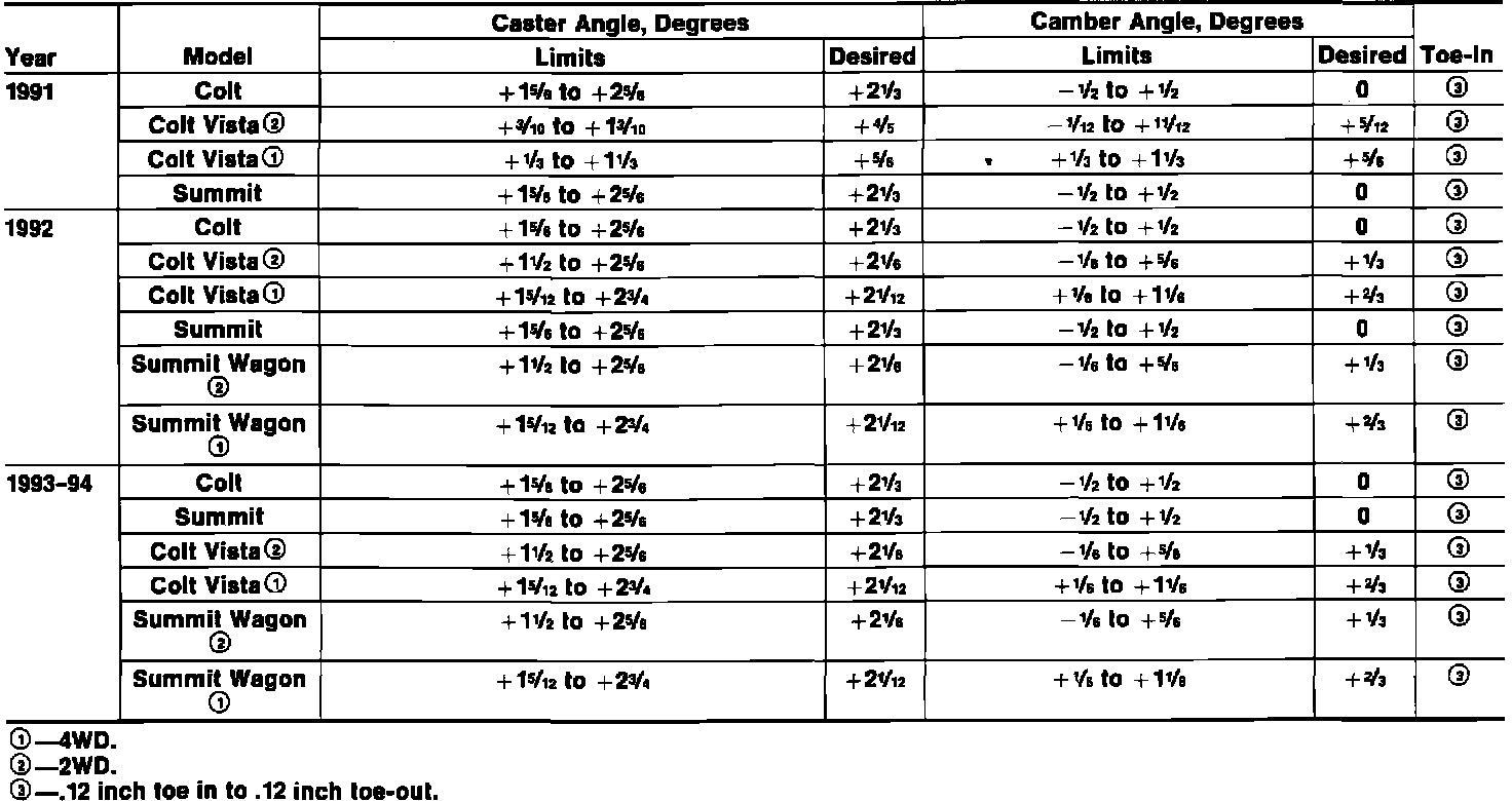 Front Wheel Alignment Specifications: