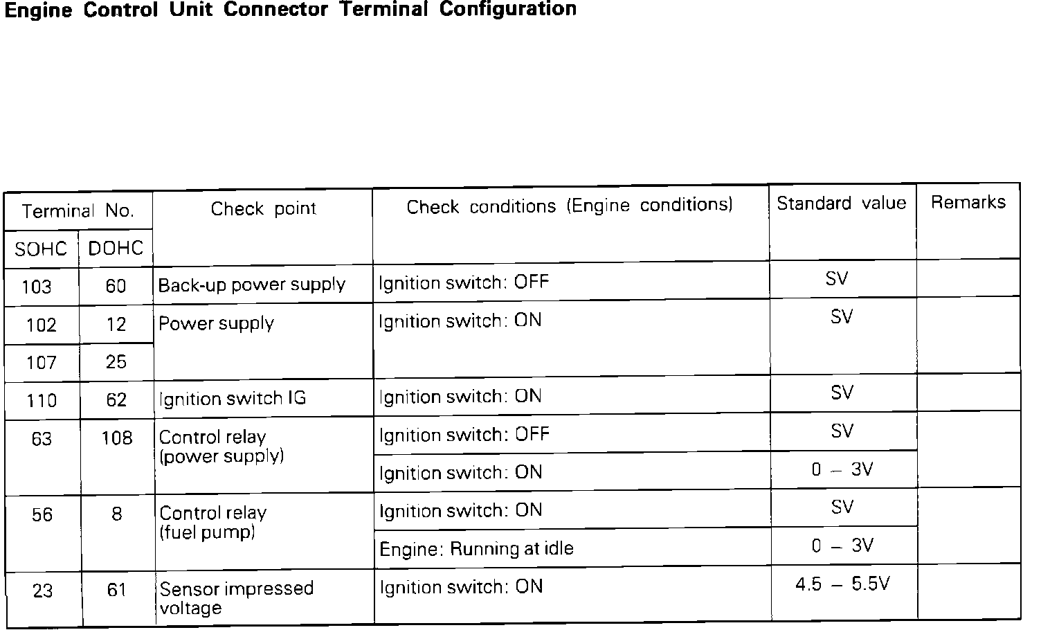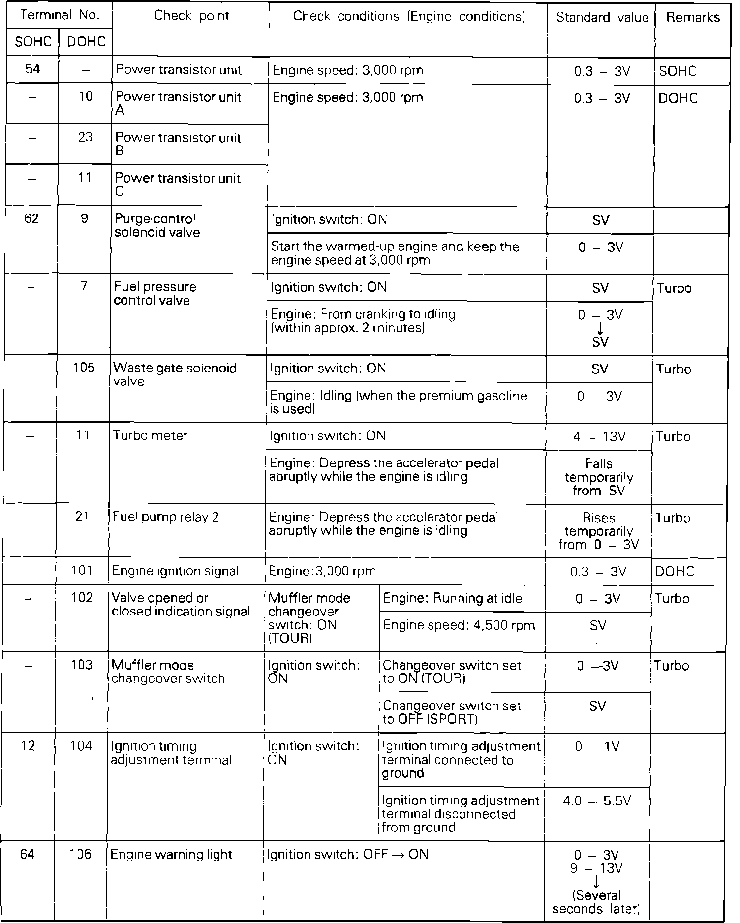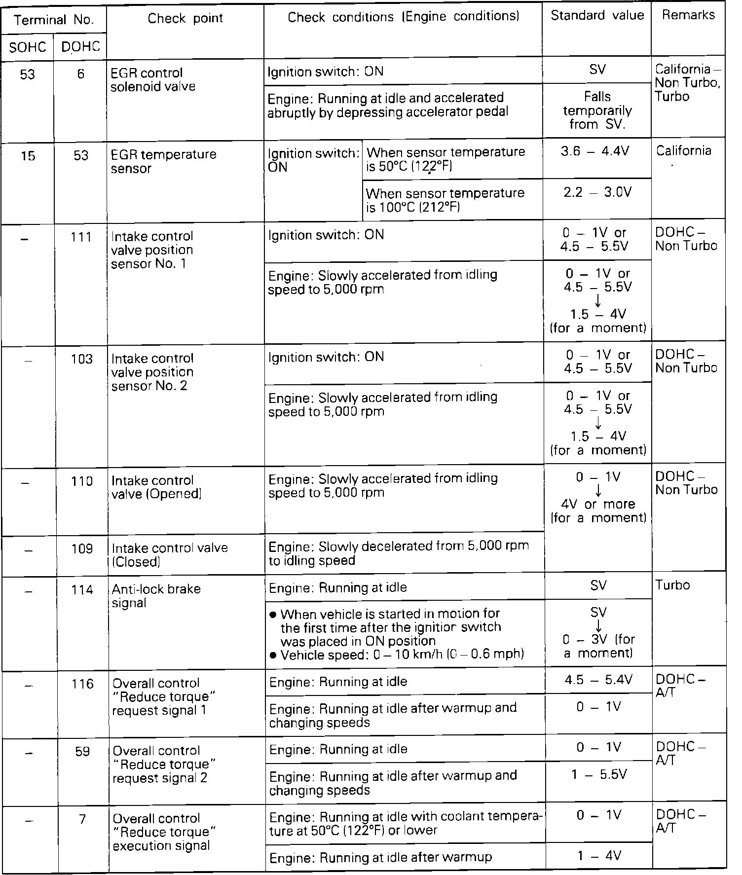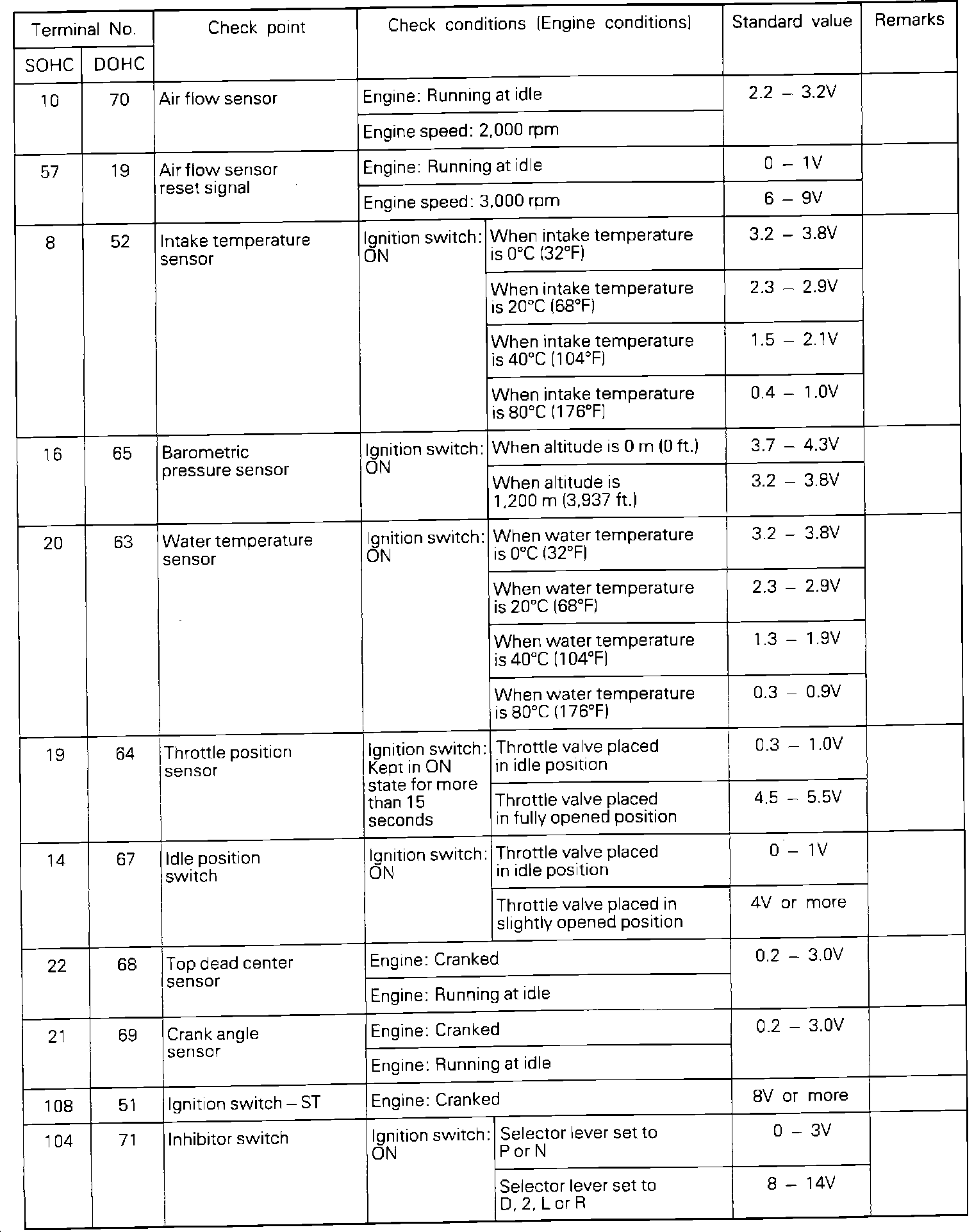 If voltage measured differs from that listed on the chart, check the corresponding sensor, actuator, or related electrical circuit. After repairs have been completed, recheck voltmeter readings to confirm that the repair has corrected the problem.