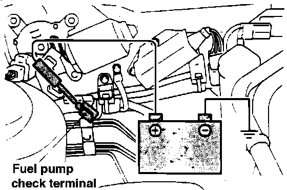 5. Apply battery power to the fuel pump drive terminal to activate the fuel pump. With fuel pressure applied check that no fuel is leaking at any of the connections.