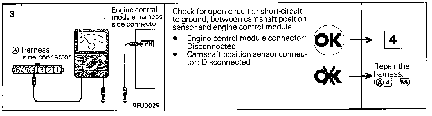 Hint 2: When the camshaft position sensor outputs a pulse signal when the ignition switch is turned to ON (without starting the engine), the camshaft position sensor or engine control module is probably defective.