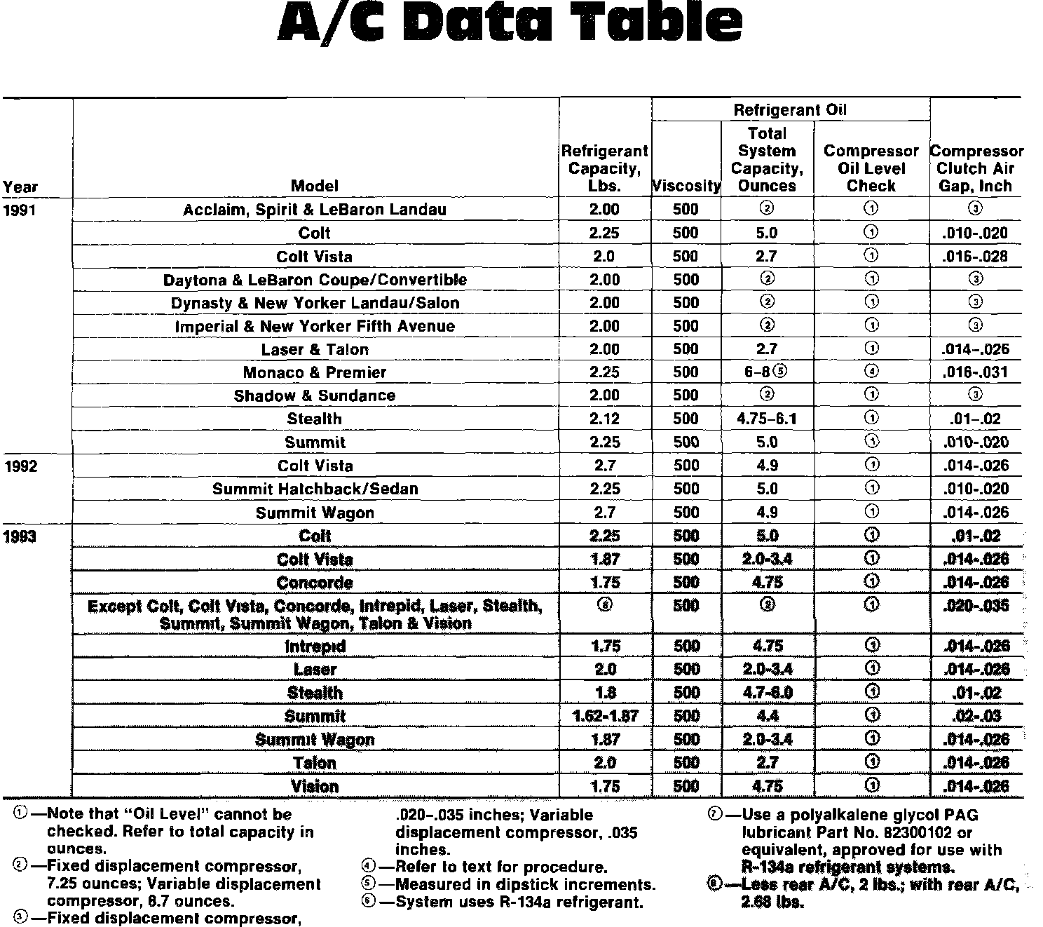 A/C Data Table: