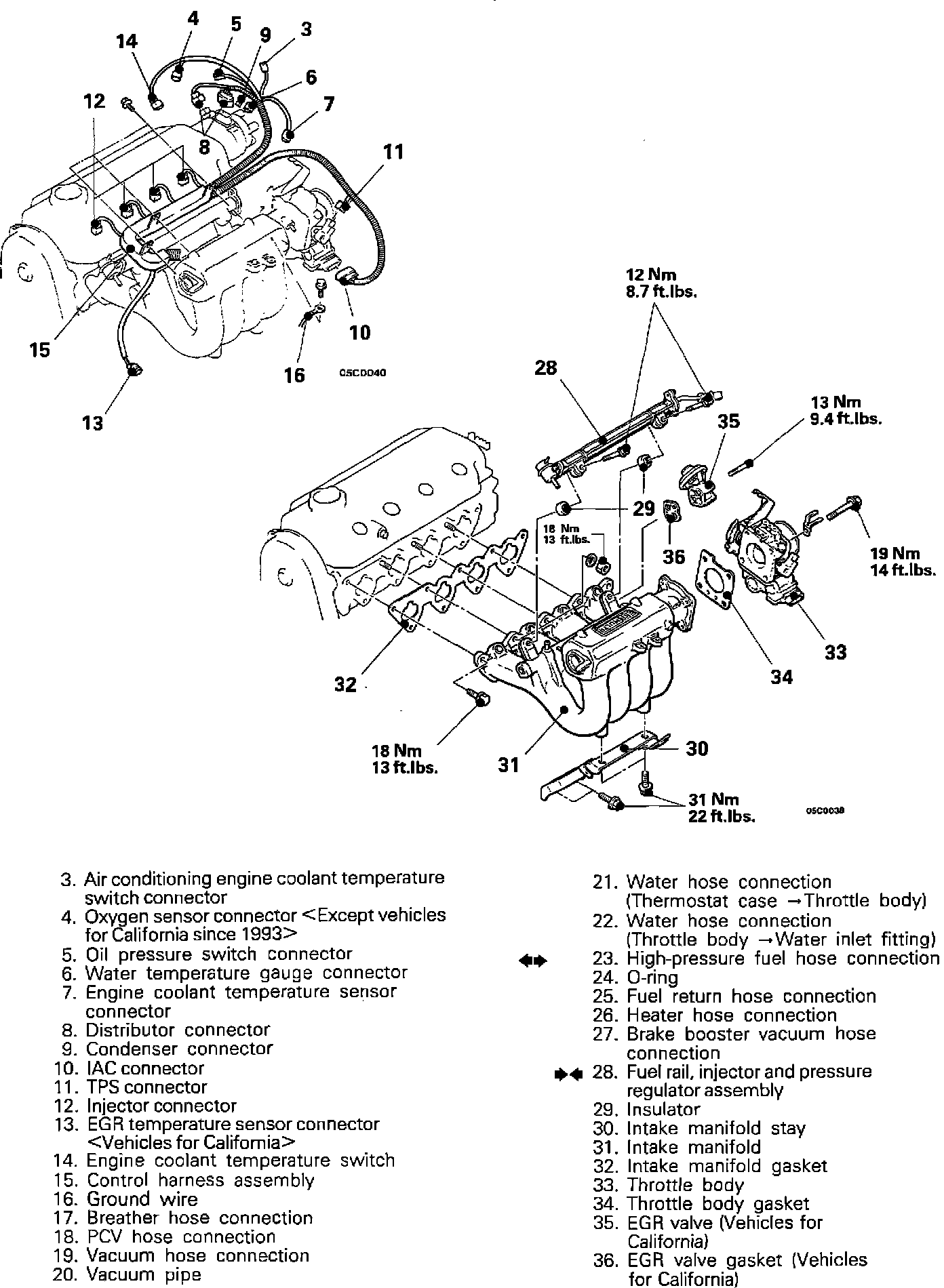 Fuel Rail, Injectors And Fuel Pressure Regulator Components:
