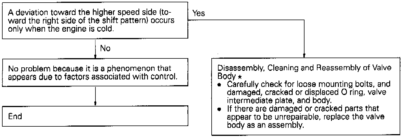 Deviations occur at some shift point5 during operation. In this case, a defective valve body is suspected, but deviations which are no problems could occur, though rarely, due to factors associated with control.