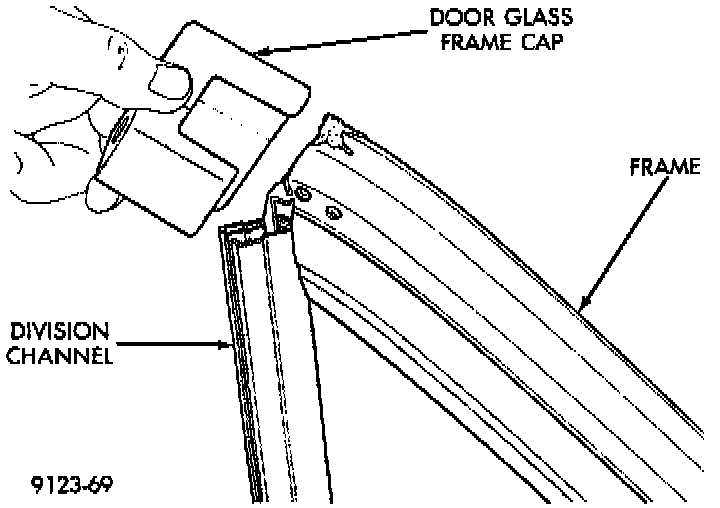 1. Remove door trim panel.Door Glass Frame Cap: