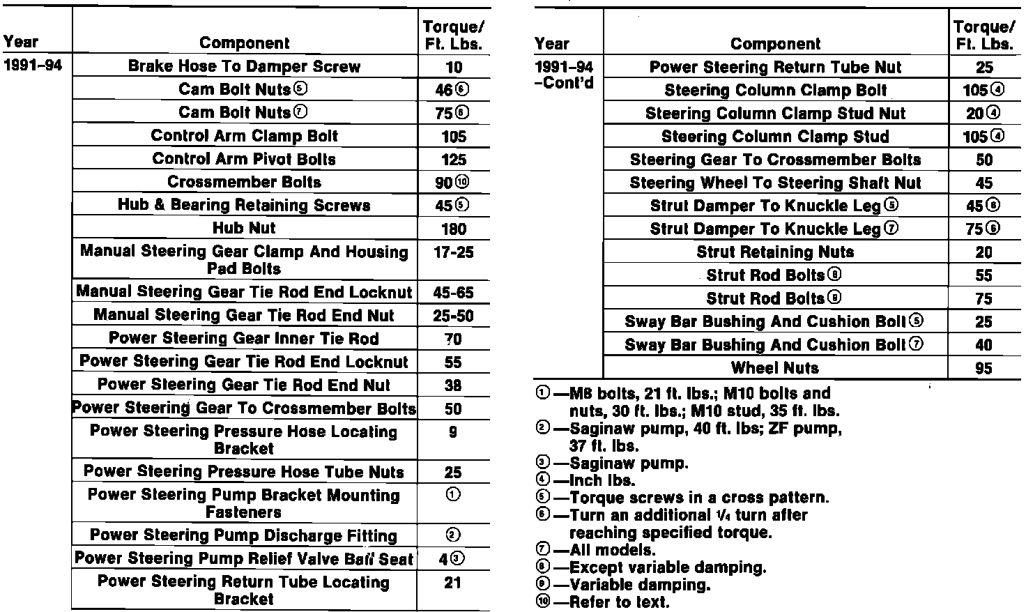 Front Suspension And Steering Tightening Specifications: