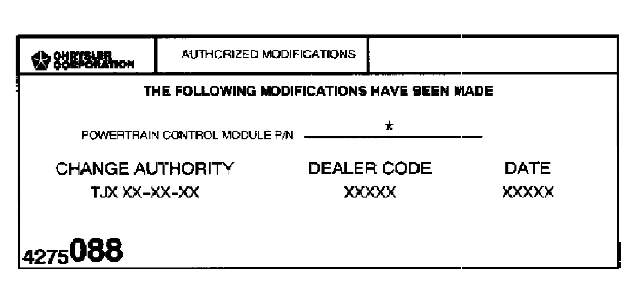 8. The MDS and DRBIII will prompt for any operator action needed during the remainder of the programming process. If both the PCM and TCM on the vehicle have already been updated, a NO UPDATES AVAILABLE message will be displayed. If this is the case, verify the Authorized Modification Labels attached to the TCM and near the Vehicle Emission Control Information (VECI) label. If the labels are not attached, proceed to step 9. Otherwise, end the procedure.