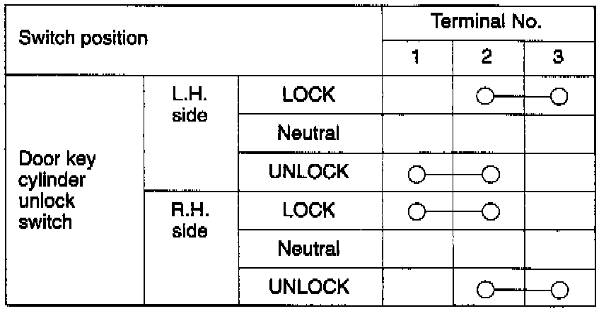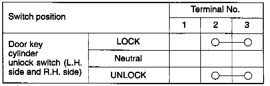 DOOR KEY CYLINDER UNLOCK SWITCH INSPECTION