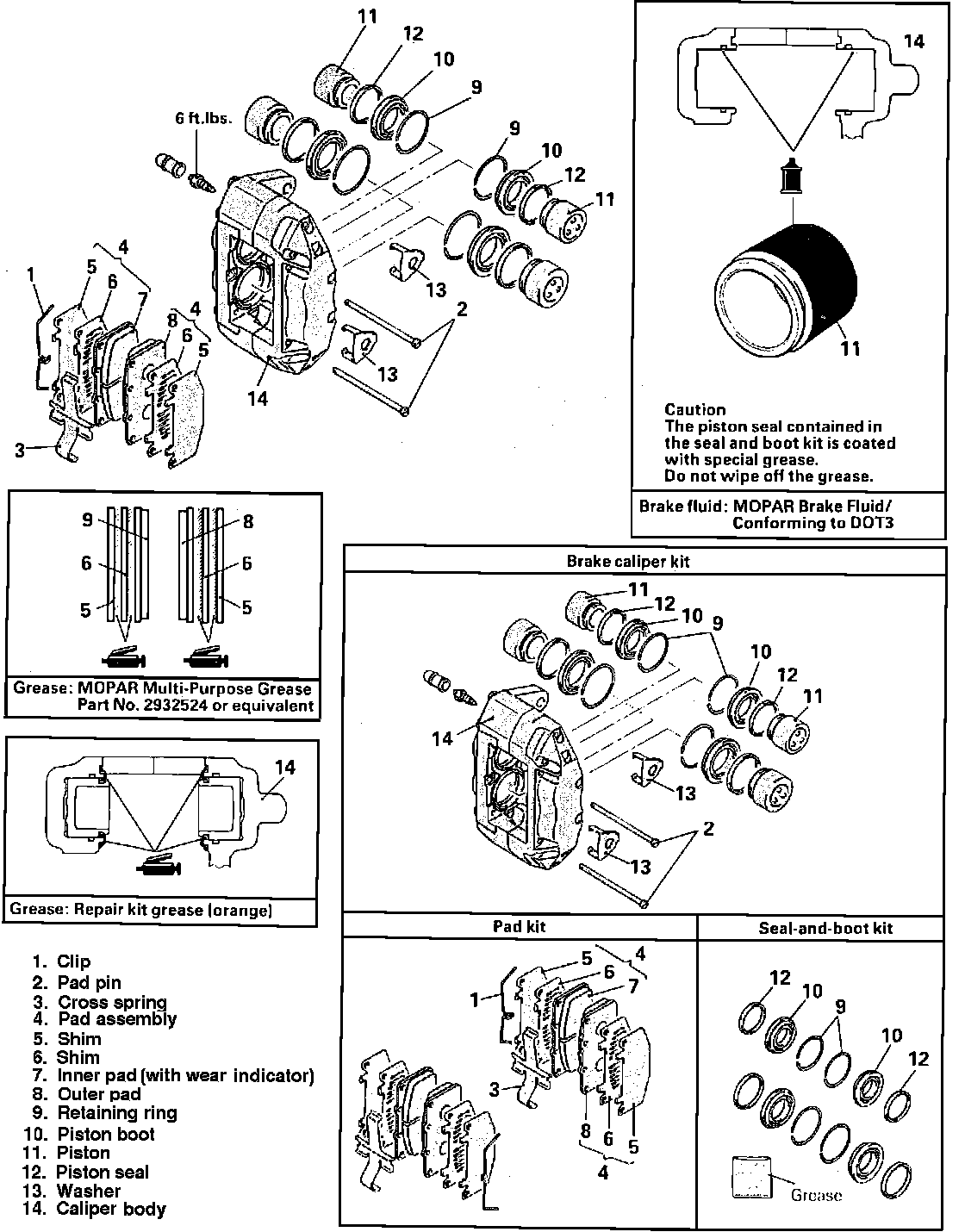 d. Fill piston edges with grease from seal and boot repair kit, then install piston boots.