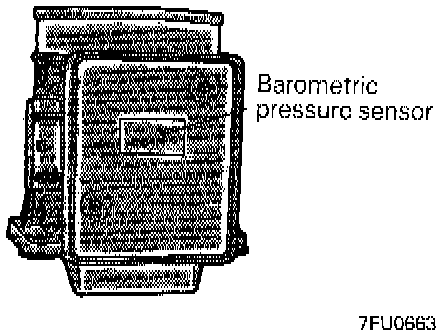 The Barometric Air Pressure Sensor is located within the Air Flow Sensor, which is bolted to the air filter housing on the RH fender housing.