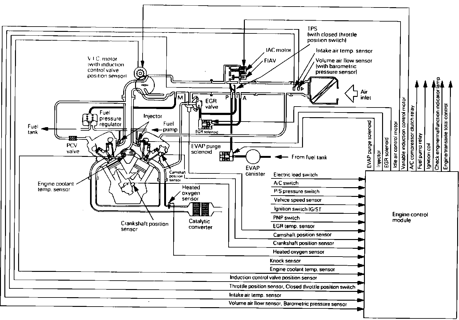 The Electronically Controlled Multipoint Injection system (ECI-MULTI) maintains emission levels and fuel economy within government agency standards, while optimizing driveability. The system consists of an Electronic Control Module (ECM), control relay, wiring, sensors and actuators.