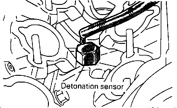 The Detonation (Knock) Sensor is located between the front and rear cylinders, bolted to the detonation sensor mounting bracket.