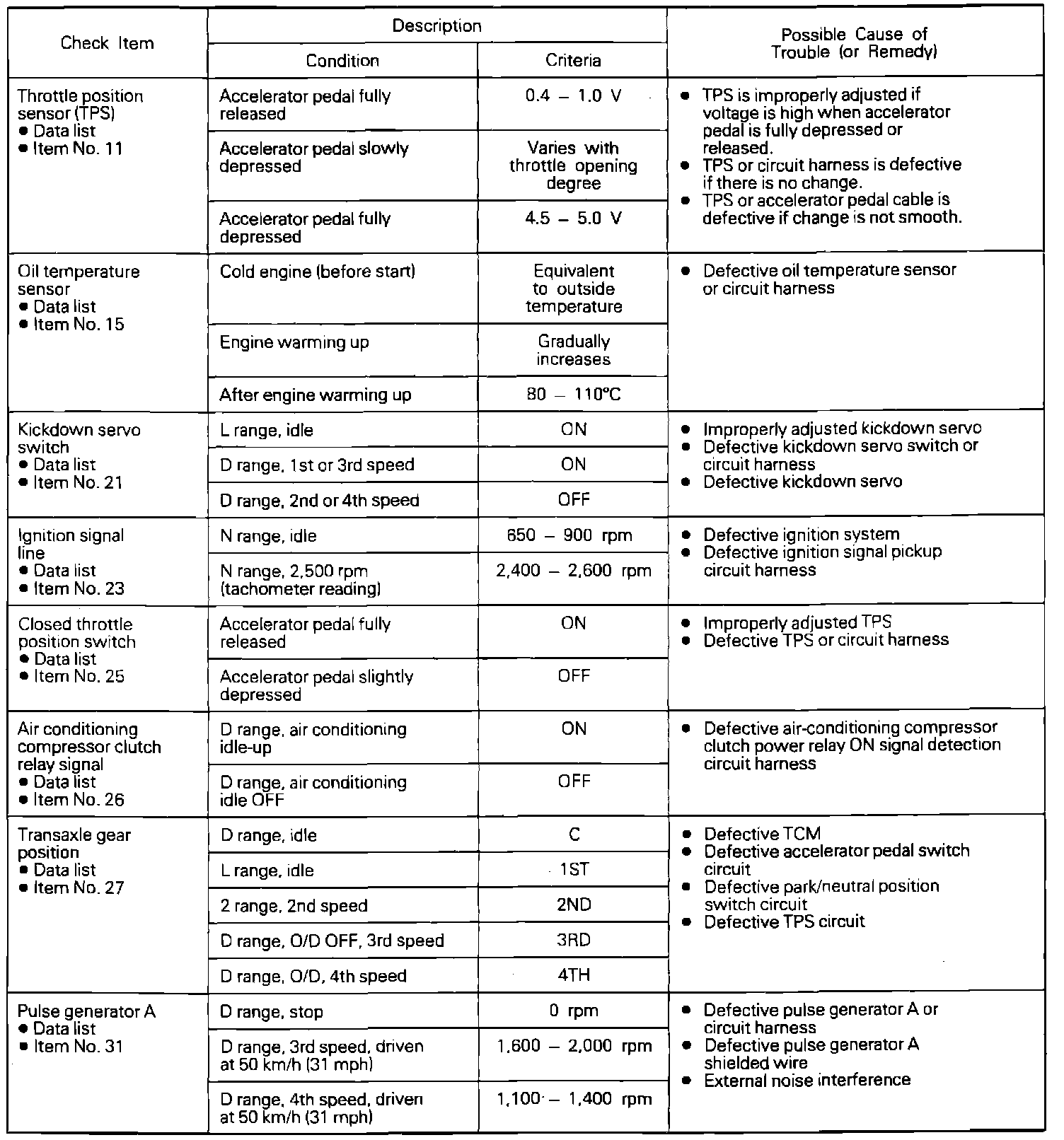 Control System Inspection Chart