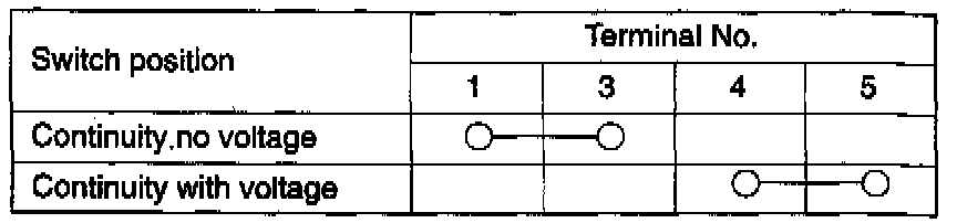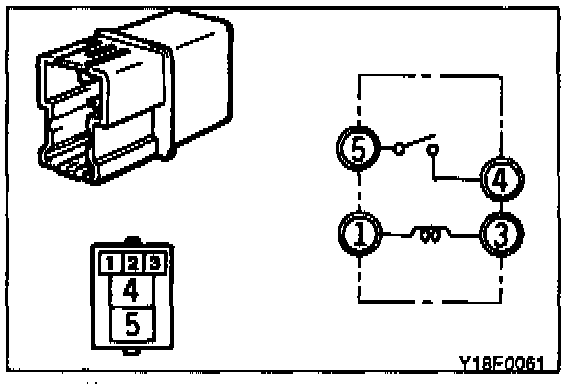 3. Apply battery voltage to terminal 1, and check for continuity when terminal 3 is grounded. If continuity is not as indicated in the chart, replace the relay.