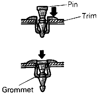 Do not push the pin inward more than necessary because it may damage the grommet, or the pin may fall in, if pushed too far.