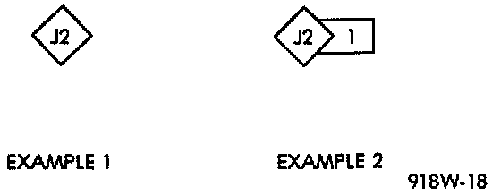 Splice locations are indicated in the diagrams by a diamond with a splice circuit code within it (example 1). If there is more than one splice per circuit a small box will be connected to it with the splice number in it (example 2).