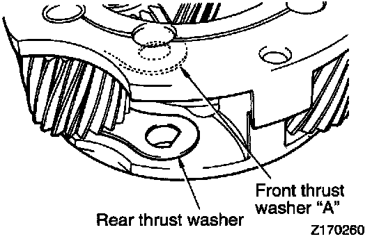 3. Line up the holes of the rear thrust washer and front thrust washer "A" with the shaft hole of the carrier.