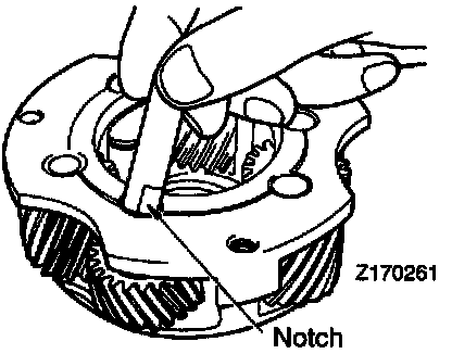 4. Install the short pinion, spacer bushing and front thrust washer and align the holes. Use care not to allow the rollers to get out of position.