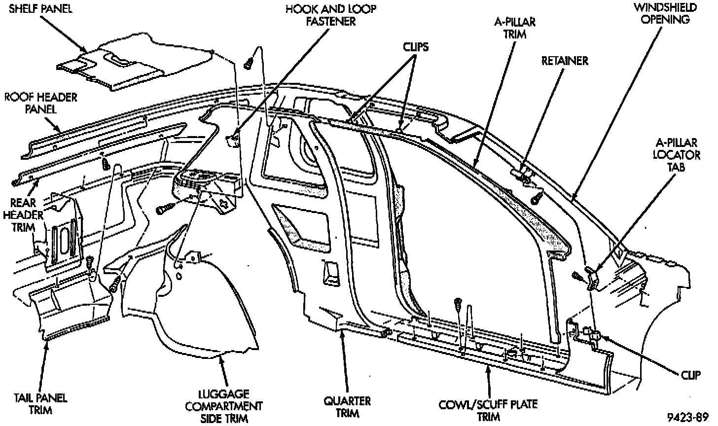 2. Remove rear seat as necessary to gain access to quarter trim fasteners.