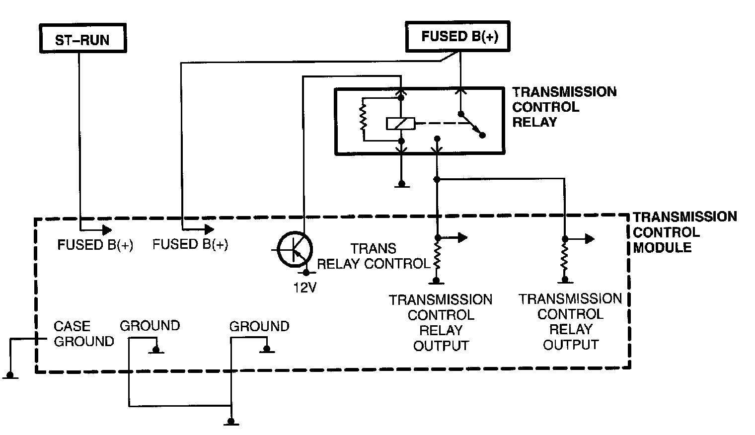 A fused, direct battery feed to the TCM is used for continuous power. The battery feed is spliced and also fed to the contact side of the Transmission Control Relay. On vehicles with an original TCM, built before 1995, if the TCM loses battery voltage for a period of time, it may lose the adaptive memory. Transaxle characteristics may be relearned by performing the quick learn or road test procedures. If battery power is lost to the TCM on vehicles built before 1995 but updated per TSB 18-24-95 (or vehicles built after 1995), then all adaptive learn values will be retained in memory; therefore, a quick learn or road test is not necessary.
