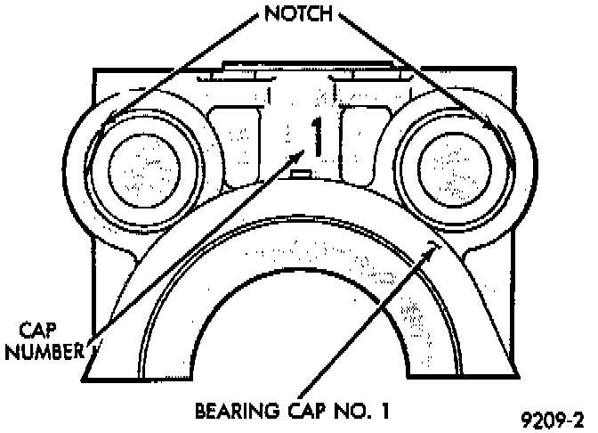 NOTE: Identify number one bearing cap number one and number four caps are similar Fig. 9.