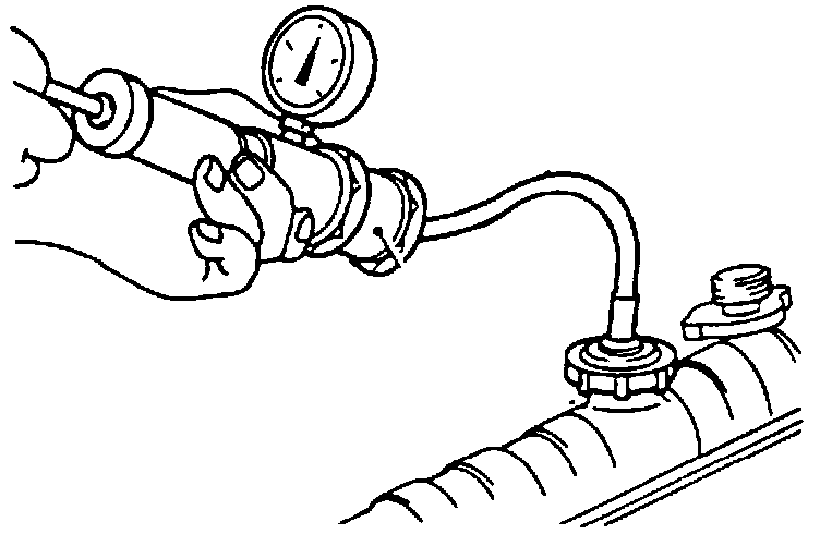 2. Pressurize the cooling system with a pressure tester and again check for leaks. Do not exceed the rated pressure of the radiator cap.