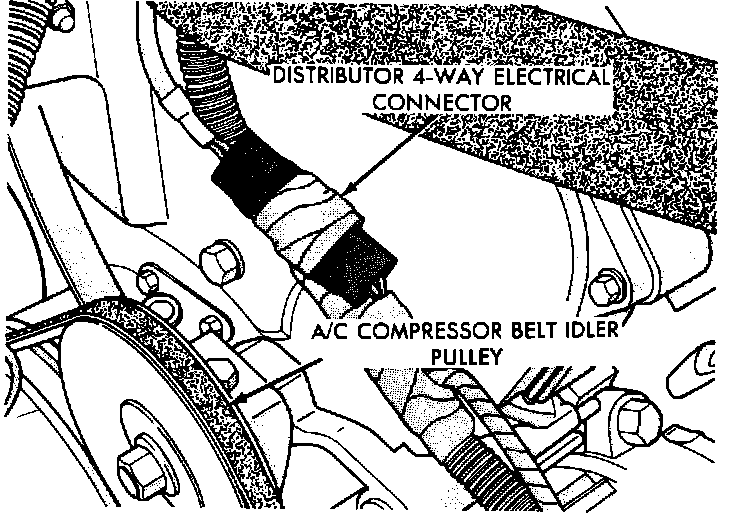 1. Disconnect negative battery cable and distributor wiring harness connector.