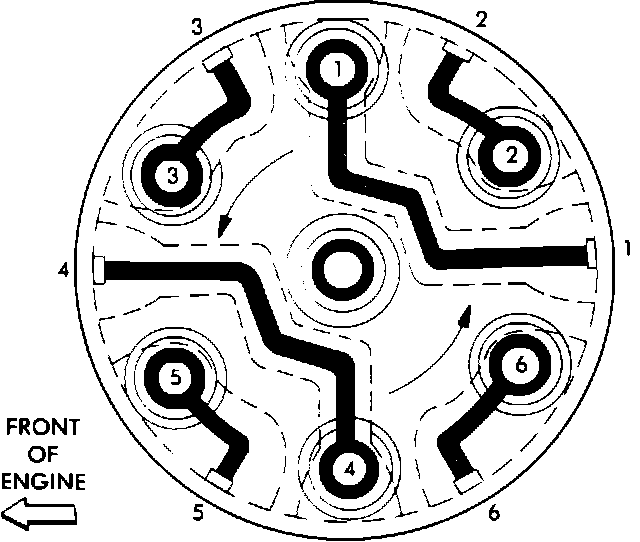 3. Rotate the engine until rotor points toward the intake plenum. Mark plenum for reference when installing distributor.