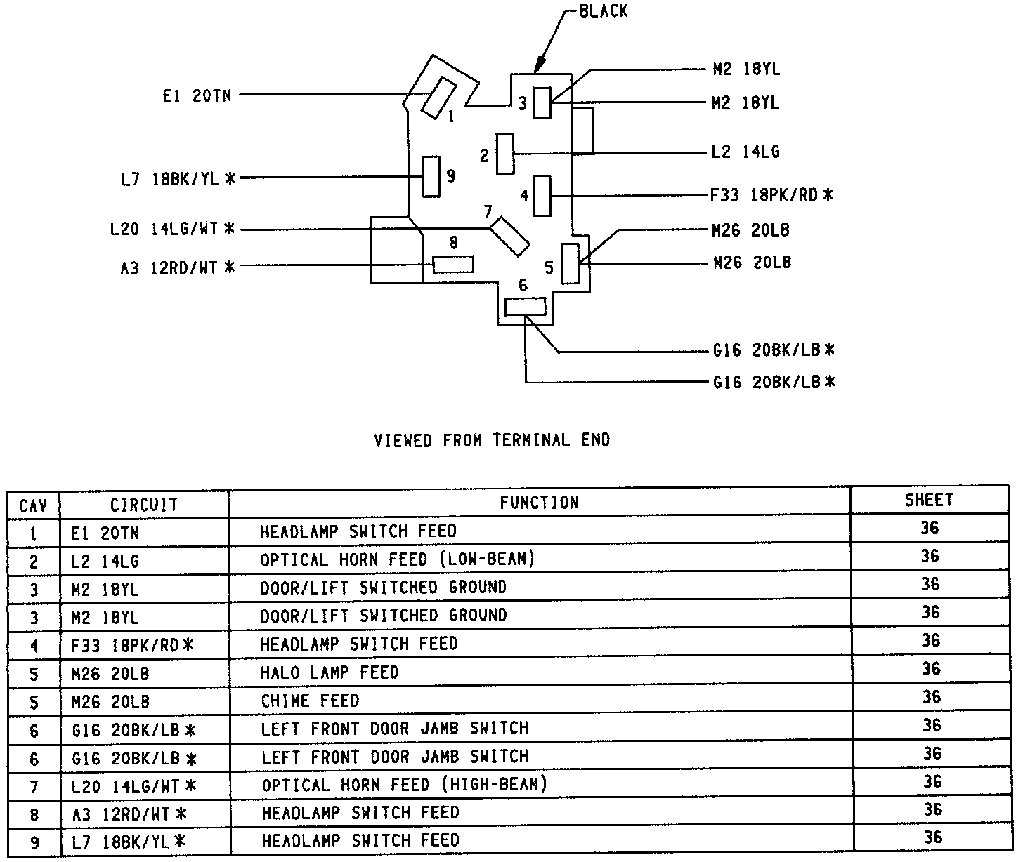 Headlamp Switch Connector: