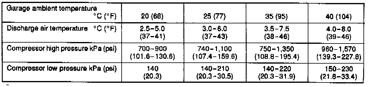 6. Note discharge temperature and compare with charts shown. Reading should be taken with compressor clutch engaged.