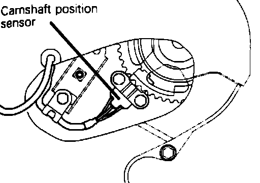 The Camshaft Position Sensor is located on the front end of the rear cylinder head, under the timing belt cover.